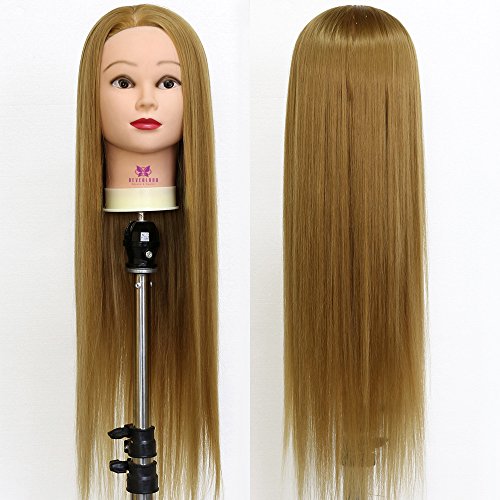 Neverland Beauty 26" Long Smooth 100% Synthetic Brown Hair Hairdressing Equipment Styling Head Doll Mannequin Training Head Tools Braiding Cutting Student Practice Model with Clamp #27 UK Stock