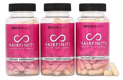 HAIRFINITY® Healthy Hair Vitamins are nutritional supplements formulated with a unique blend of bioactive vitamins, minerals and nutrients, including Biotin which promotes the growth and maintenance of existing hair. Our exclusive CAPILSANATM COMPLEX provides the hair with its naturally occurring building blocks through the strengthening amino acids in Hydrolyzed Collagen, sulphur containing MSM for vitality, and hair boosting Horsetail with silica. This powerful combination encourages healthier, more luxurious hair from the inside out. For all hair types. Dietary supplements should only be taken within the framework of a healthy lifestyle, and are not meant to substitute a varied and balanced diet. Unlike most hair care products which only work on the surface, HAIRFINITY® Healthy Hair Vitamins work to improve the condition of your hair from the inside of your body. HAIRFINITY® fills in the gaps left by your regular diet to provide your body with the nutrition it needs for healthy hair. Each ingredient in HAIRFINITY® Healthy Hair Vitamins was specifically chosen for the special role it plays in helping create the ideal environment for healthy hair to thrive. Biotin, especially, promotes the growth and maintenance of existing hair. Directions: Adults, take two capsules per day. 30 day supply (60 capsules per bottle). For all hair types. Caution: Do not exceed recommended serving size. Keep out of reach of children. Store in a cool dry place. Keep out of reach of direct sunlight. Do not use if seal is broken. Seek the advice of a health practitioner before using this product if you are pregnant or nursing. FDA Disclaimer: These statements have not been evaluated by the FDA. This product is not intended to diagnose, cure treat, or prevent and disease. Country of Manufacture: USA. Expiration Date: 2 years from date of manufactureHAIRFINITY® fills in the gaps left by your regular diet to provide your body with the nutrition it needs for healthy hair